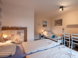 Ausstattung: 1 Schlafzimmer mit Boxspringbett und TV. 1 Kinderzi. mit 3 2-m-Betten. Bad mit begehbarer Dusche, sep. WC zusätzlich