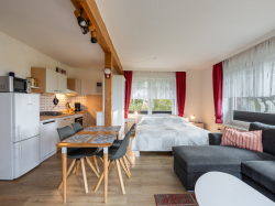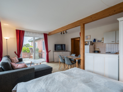 Ausstattung: Terrasse, 1 DZ, 1 Wohn- /Schlafraum mit Doppelbett, Kochnische,Geschirrspüler. Bad mit Dusche.